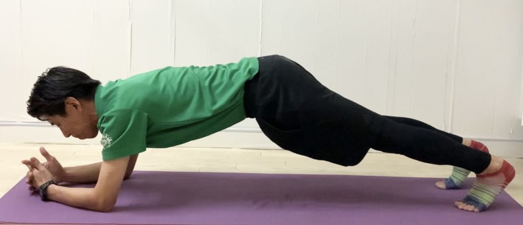 1. 手を軽く組み、プランク姿勢を作る