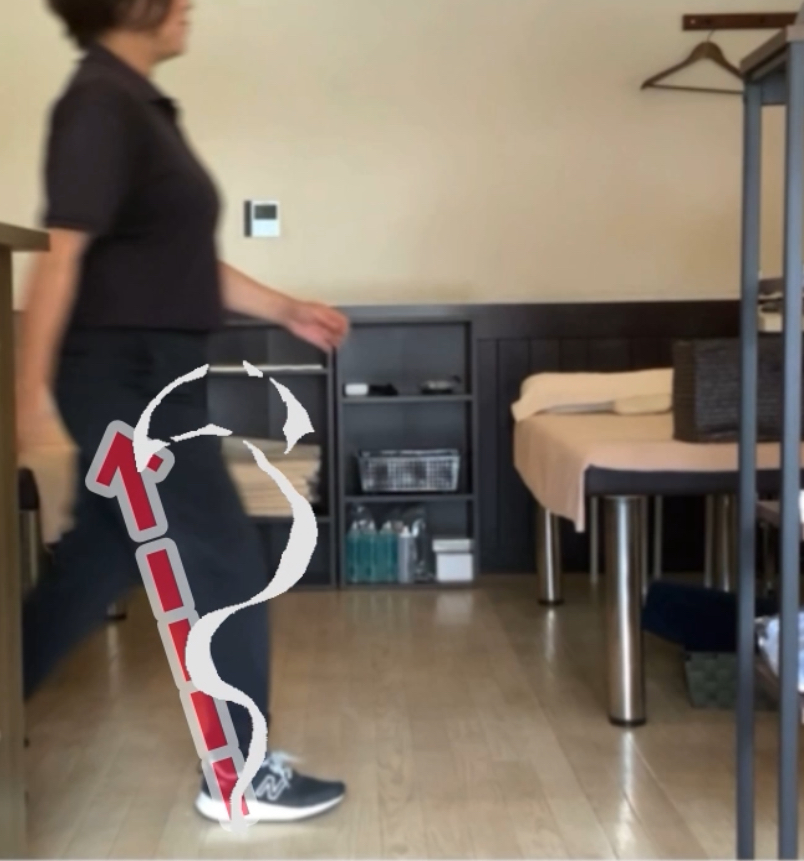 ここが崩れると、下部体幹が働かず、歩行全体のリズムが崩れます。