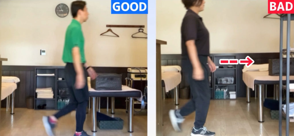 「股関節伸展で推進できない」歩き方になります。